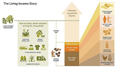 The concept of living income goes a step beyond traditional notions of poverty alleviation that are concerned with basic subsistence and survival. It puts a strong emphasis on the idea of decency and earning enough income to live comfortably.