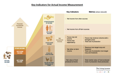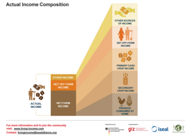A number of methodologies can be used for calculating the actual or existing incomes of smallholders and their associated communities. This page explains the composition of actual income and a number of actual income calculation options that have been used by various actors.
